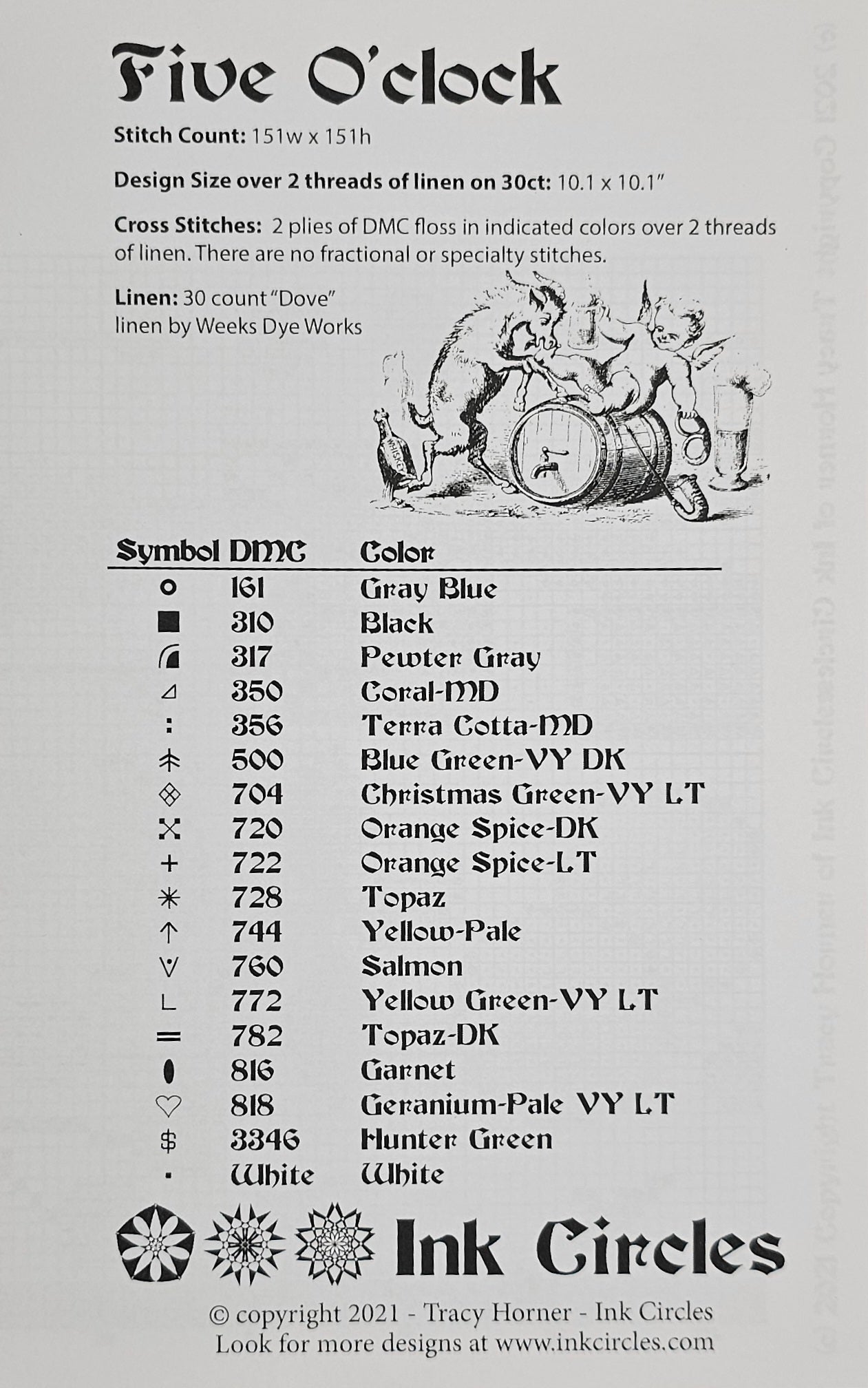 Five O'clock Cross Stitch Pattern: Ink Circles