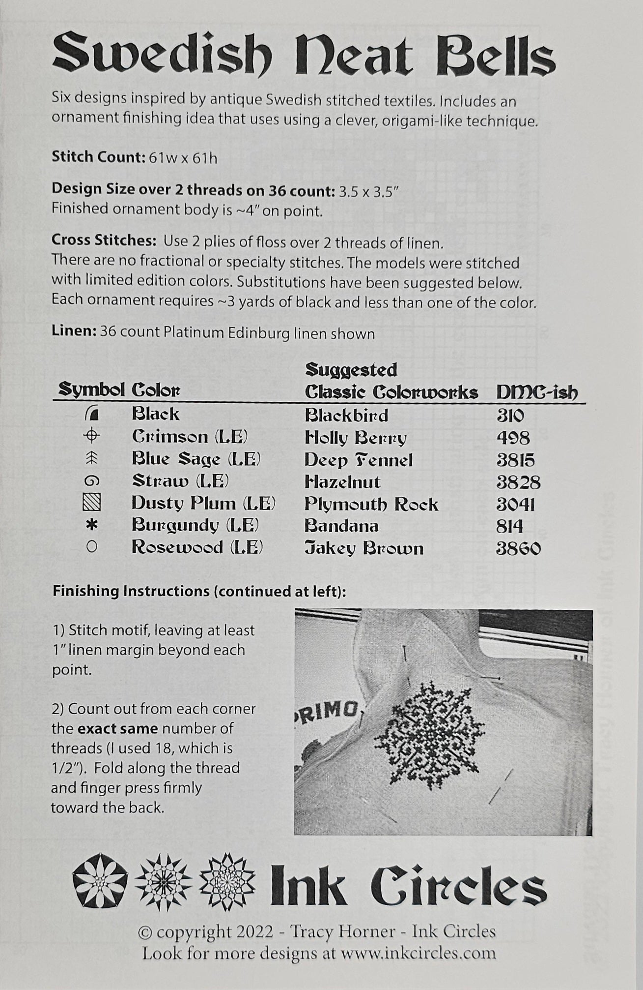 Please see photo for design size and suggested floss. Instructions included for completing 3D oenaments.